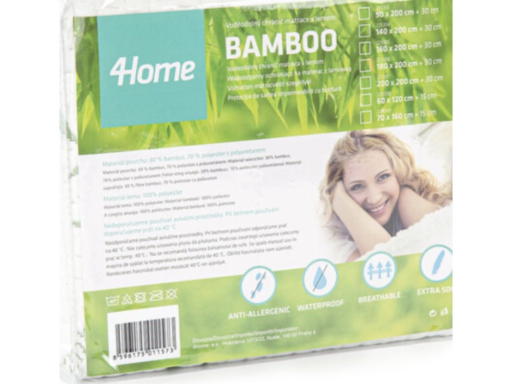 Dopřejte si maximálně zdravý spánek. Tento unikátní nepropustný chránič matrace Bamboo přinese vaší posteli dokonalou čistotu i pohodlí. Je měkký, prodyšný a díky obsahu blahodárných bambusových vláken má také přirozené antibakteriální a hypoalergenní vlastnosti. Pravidelné používání chrániče prodlužuje životnost vaší matrace a zabraňuje pronikání potu i špíny do matrace, zaručí tak dokonalou hygienu vašeho lůžka. Chránič matrace snadno sejmete a vyperete, takže údržba je téměř bez práce.