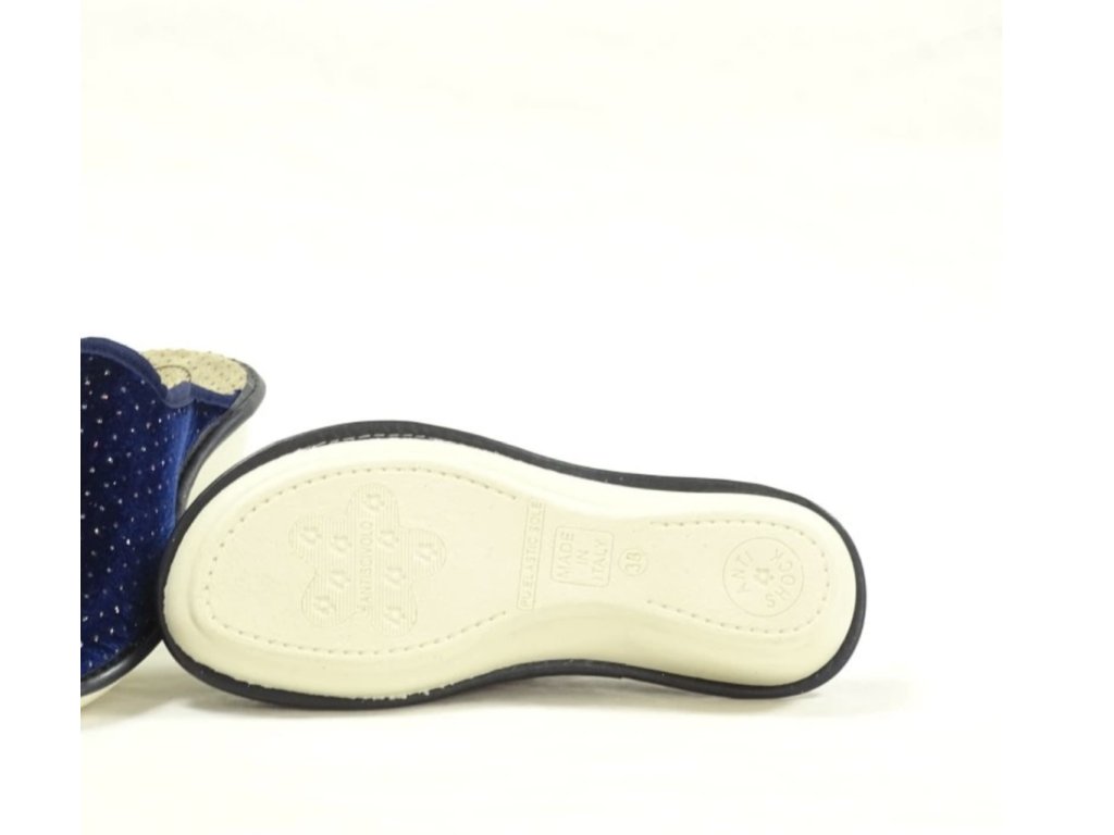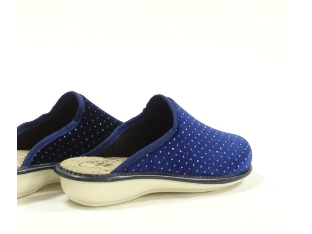 Objevte radost v každém kroku s elegantní domácí obuví Santé, která kombinuje styl a pohodlí. Tyto pantofle jsou vyrobeny z kvalitního textilu v nádherné tmavě modré barvě, což je perfektní volba pro nadcházející sezónu.