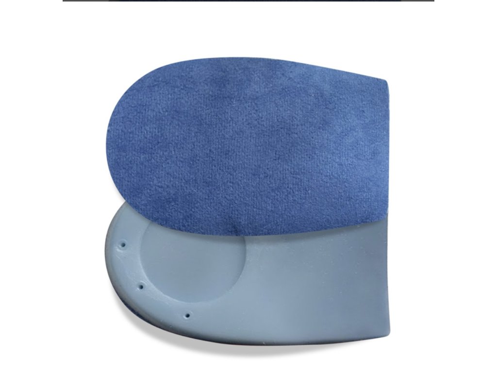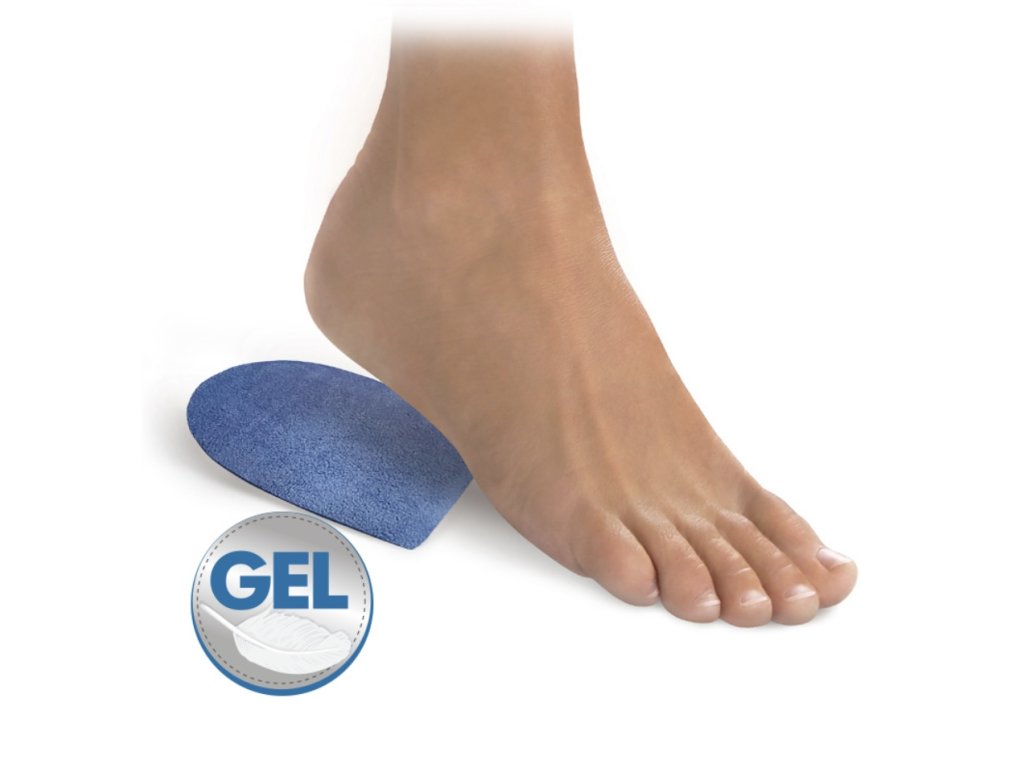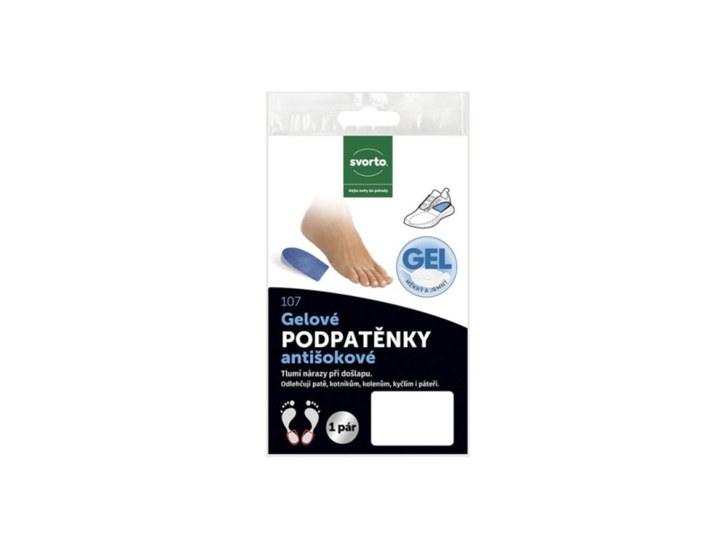 Gelové podpatěnky antišokové jsou vyrobeny z měkkého a jemného gelu, který tlumí nárazy při došlapu, minimalizuje zatížení kotníku, kyčelního kloubu a páteře. Velurový povrch ze 100% polyesterové tkaniny zpříjemňuje dotyk s nohou.