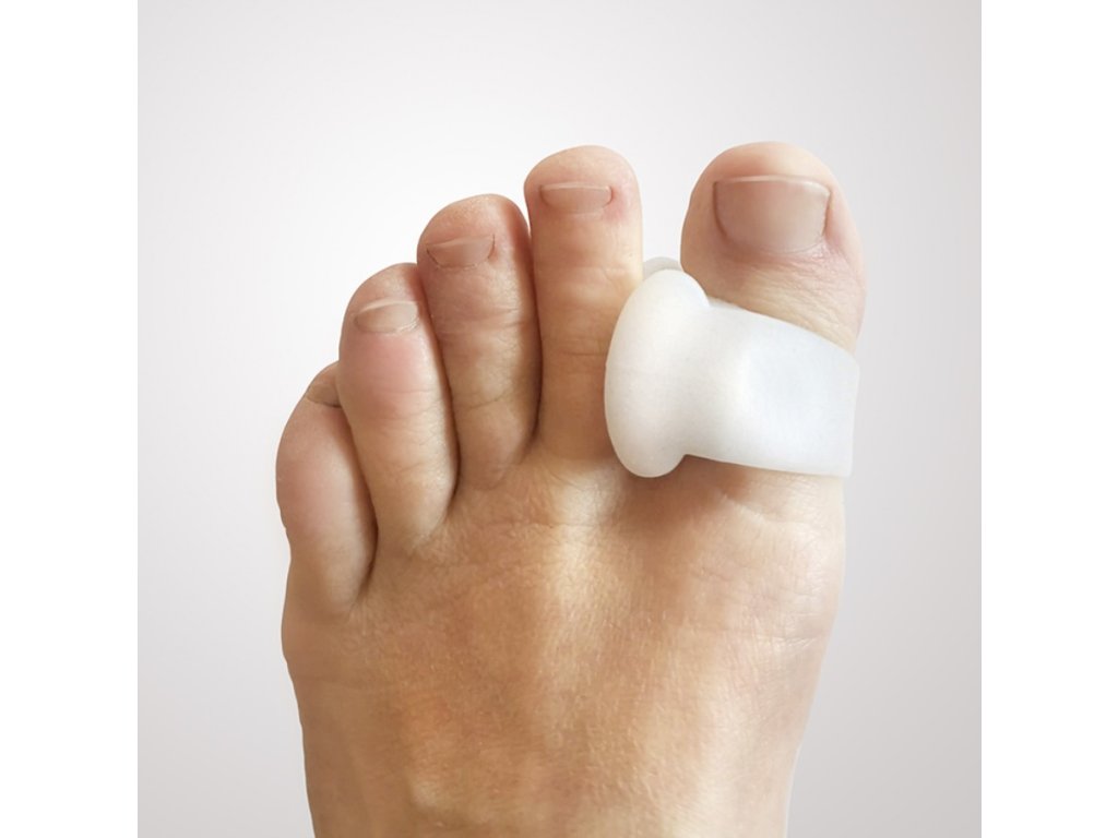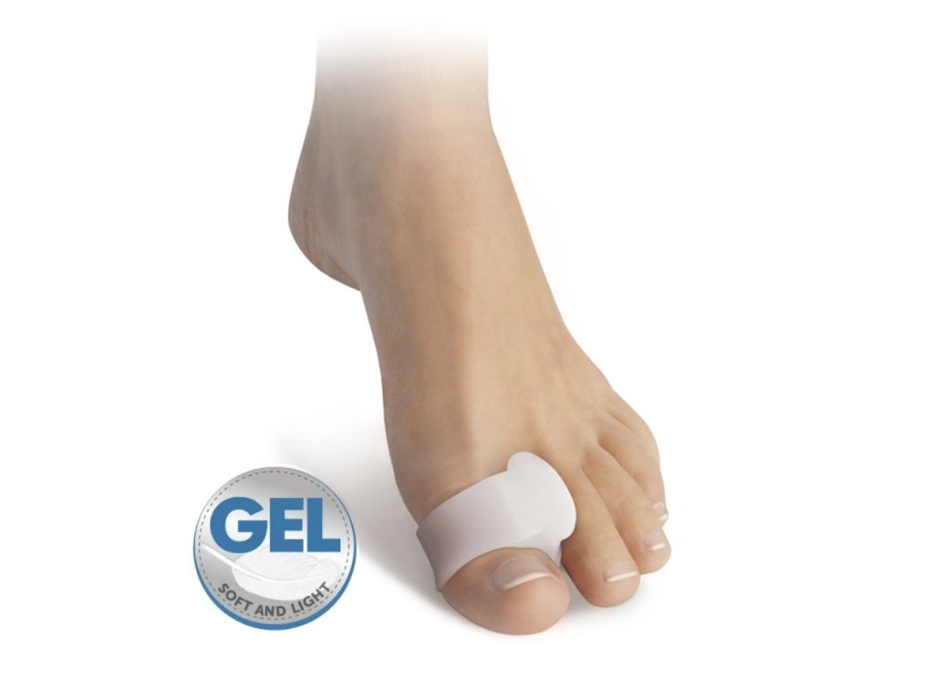 Měkký korektor je fixován ve správné poloze díky pružnému kroužku. Zabraňuje tření a odřeninám. Lze navléct buď na palec nebo na druhý prst.
